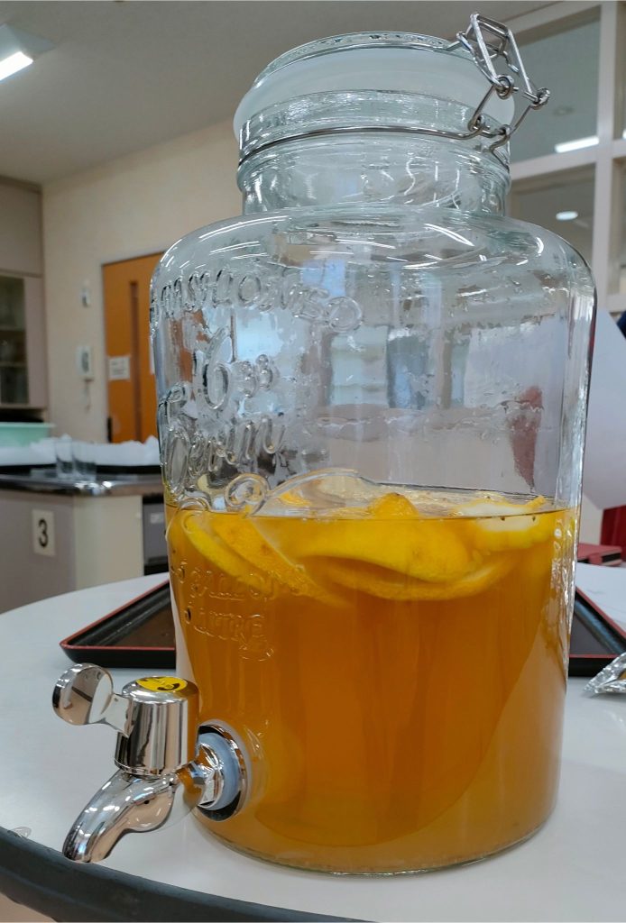 ハーブの花、有機シチリアレモン、砂糖で作られた爽やかなドリンクがふるまわれました。