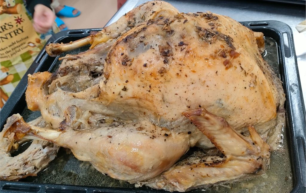 講師の方々が用意してくださった七面鳥の丸焼き。中にかりん、玉ねぎ、にんにくを詰めて焼き上げた、香り豊かな感謝祭メニュー。