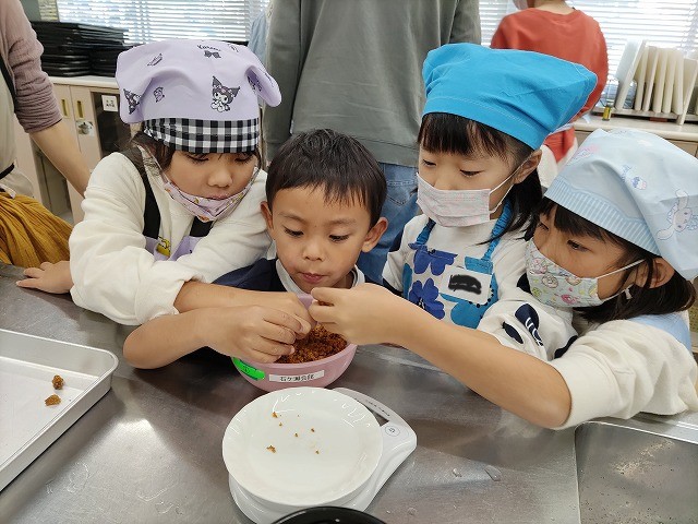 こねたり丸めたりする作業は3歳でも参加できとても楽しかったようで、子どもたち同士の交流も生まれていました。