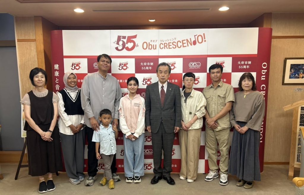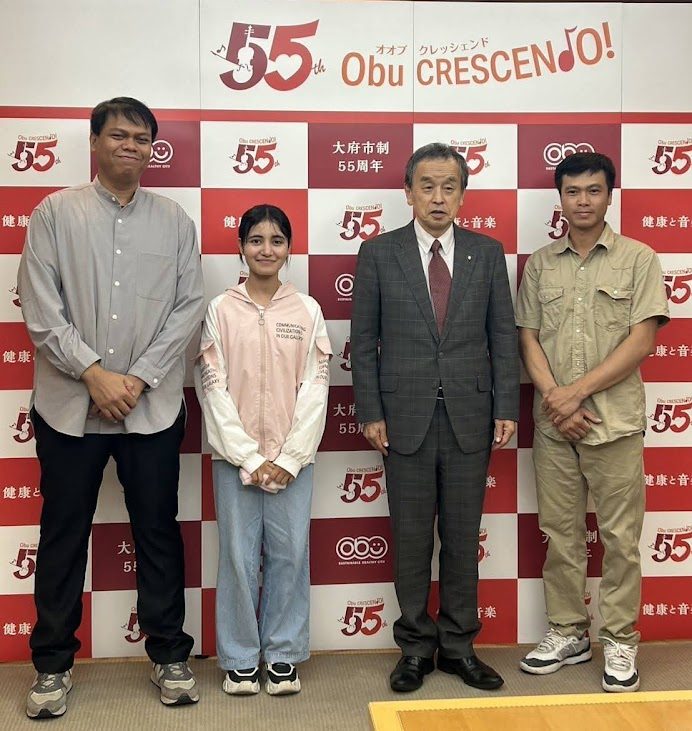 当協会日本語教室では、令和5年度より愛知県主催「外国人県民による多文化共生日本語スピーチコンテスト」に出場しており、3年連続で受賞しております。その成果を報告するため、今年度特別賞を受賞したカレル パラキリティさん、令和6年度最優秀賞のユダ エラシャさん、令和5年度特別賞のホアン キム チュンさん、ボランティアの代表が大府市長を表敬訪問しました。